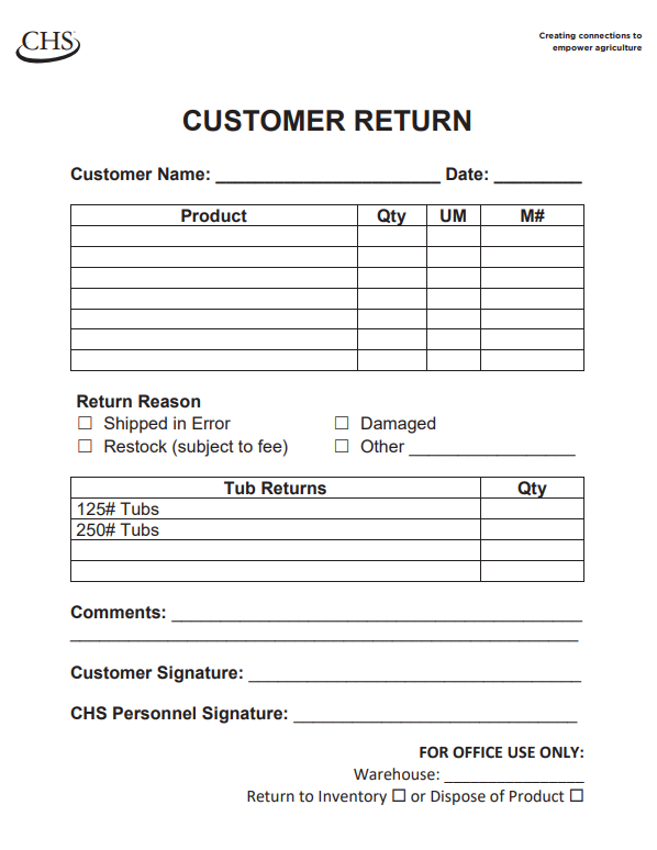 CHS Return Forms Pk/ of 100